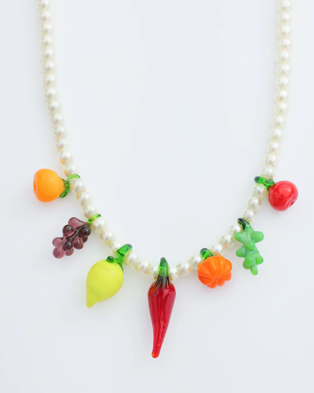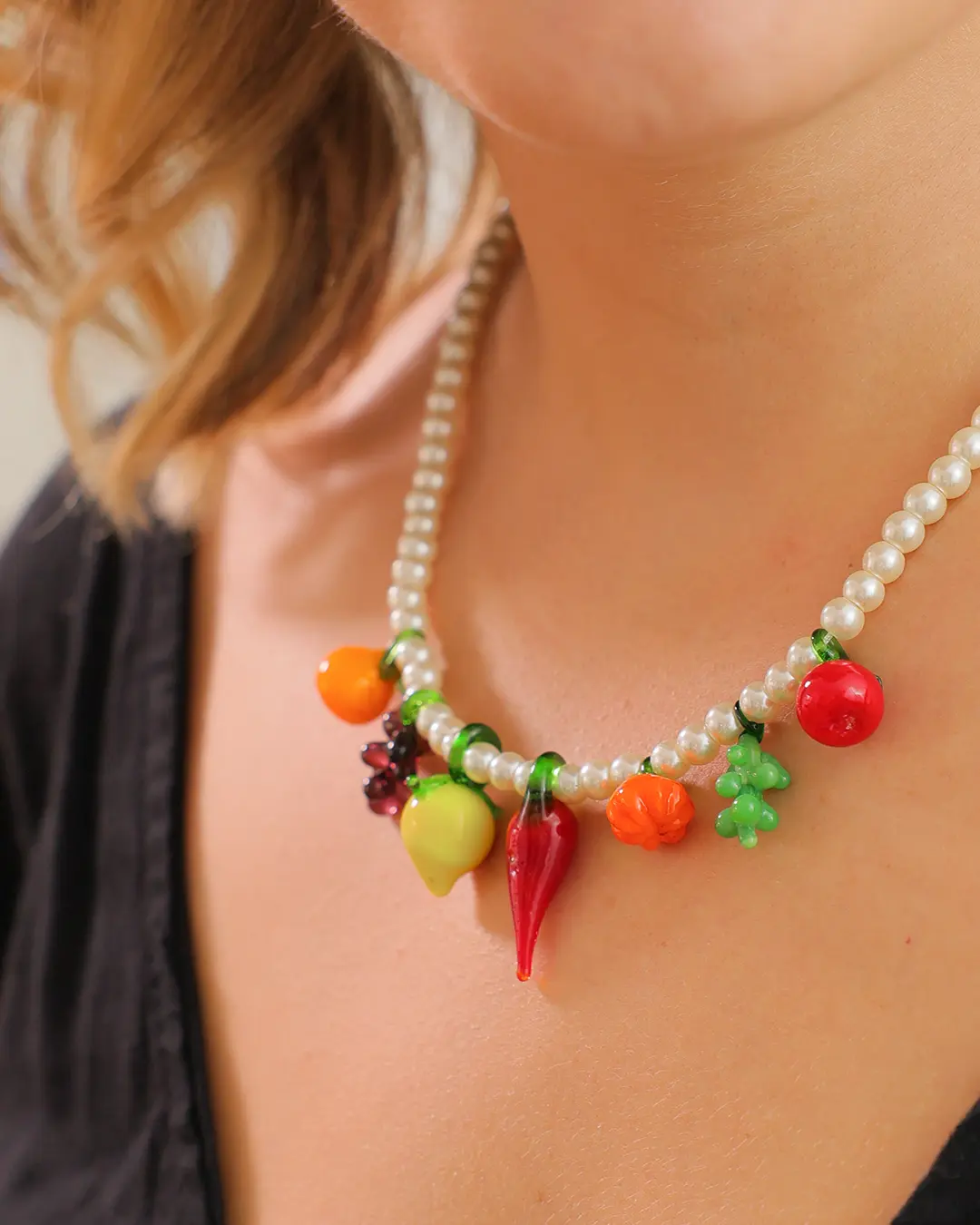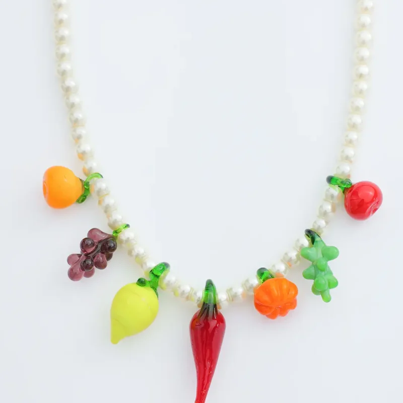 Collar con perlas y frutas de colores